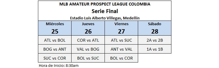 Hoy viernes 27 de enero, en el diamante “Luís Alberto Villegas” de la Unidad Deportiva “Atanasio Girardot” de Medellín finaliza el calendario regular del Torneo MLB Amateur Prospect League Colombia.